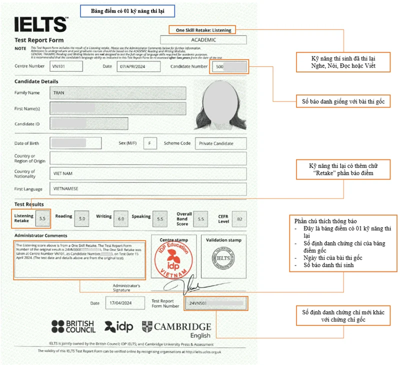 - + IELTS: Có thể thi lại bất cứ khi nào, không có giới hạn về số lần thi