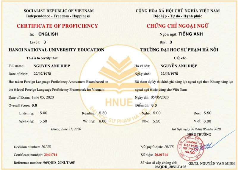 Chứng chỉ Tiếng anh VSTEP Khung Năng Lực Ngoại Ngữ 6 Bậc Việt Nam