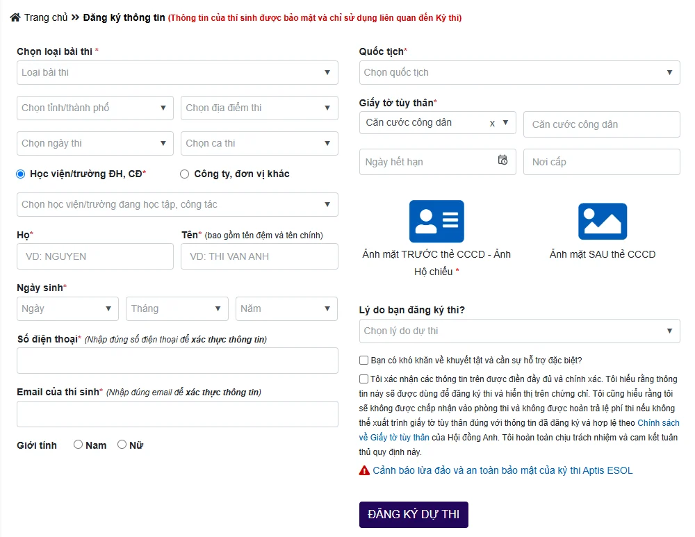 - – Đăng Ký Thi Chứng Chỉ Tiếng Anh Aptis ESOL hoàn toàn online, minh bạch trên nền tảng chính thức.