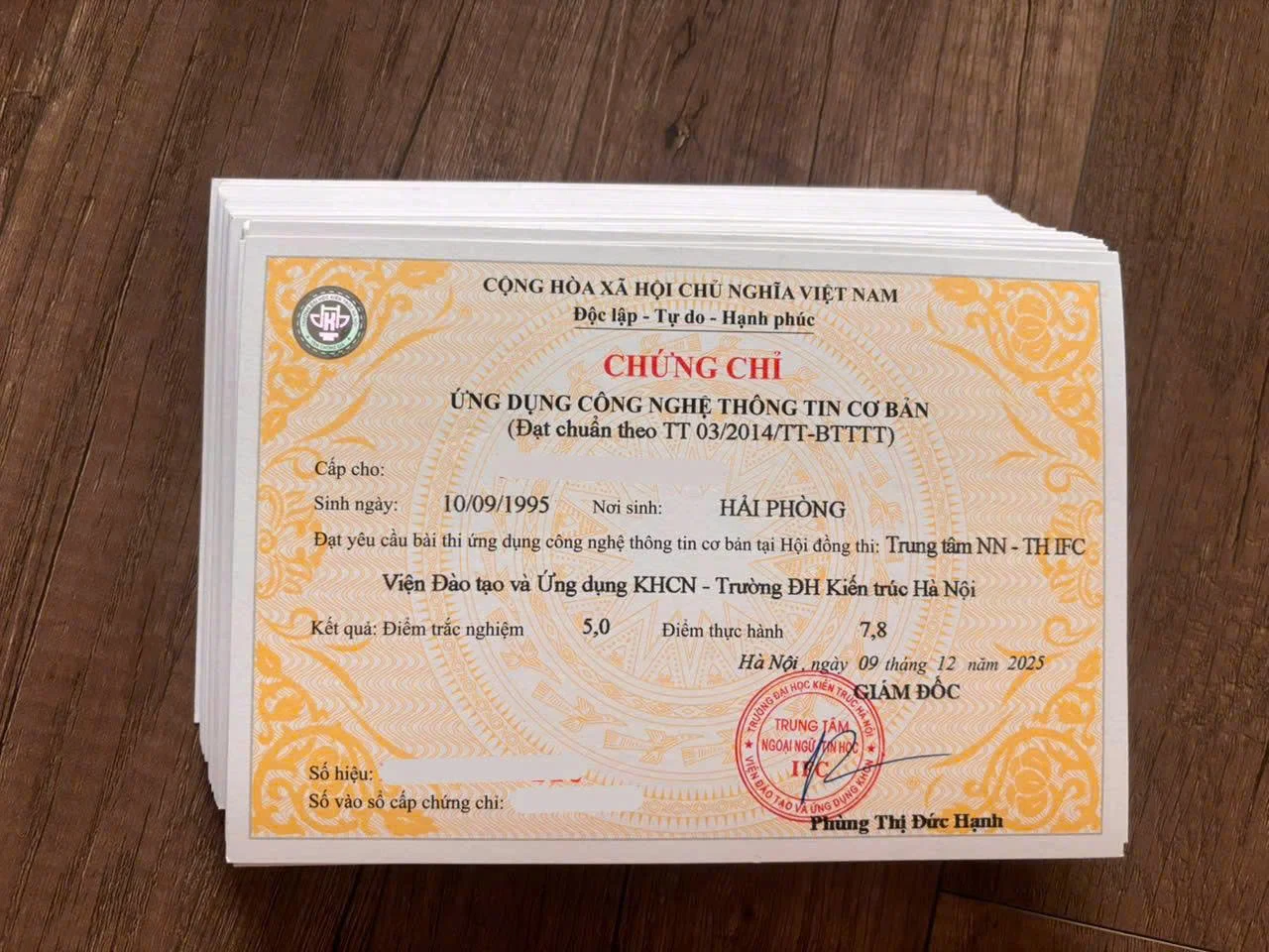 3. Hồ sơ đăng ký dự thi Chứng chỉ Tin học Cơ bản Đại học Kiến Trúc Hà Nội ngày 21/12/2025: