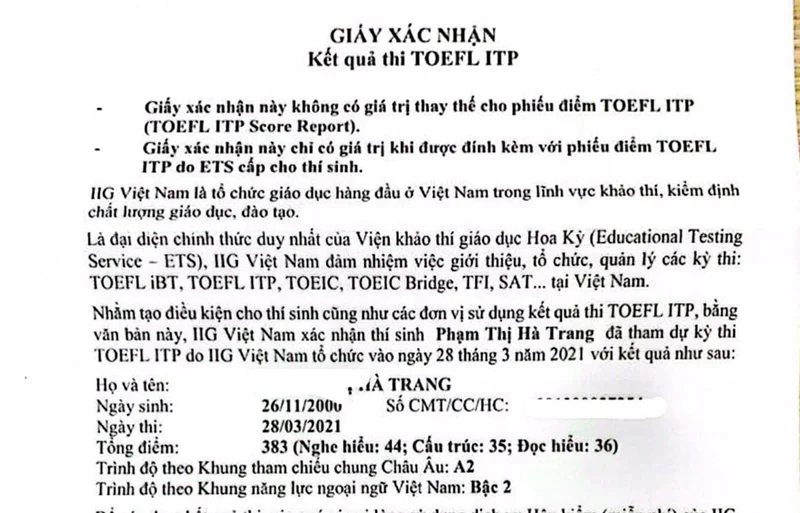 5.Nhận phiếu điểm lịch thi chứng chỉ TOEFL ITP 29/10/2025:
